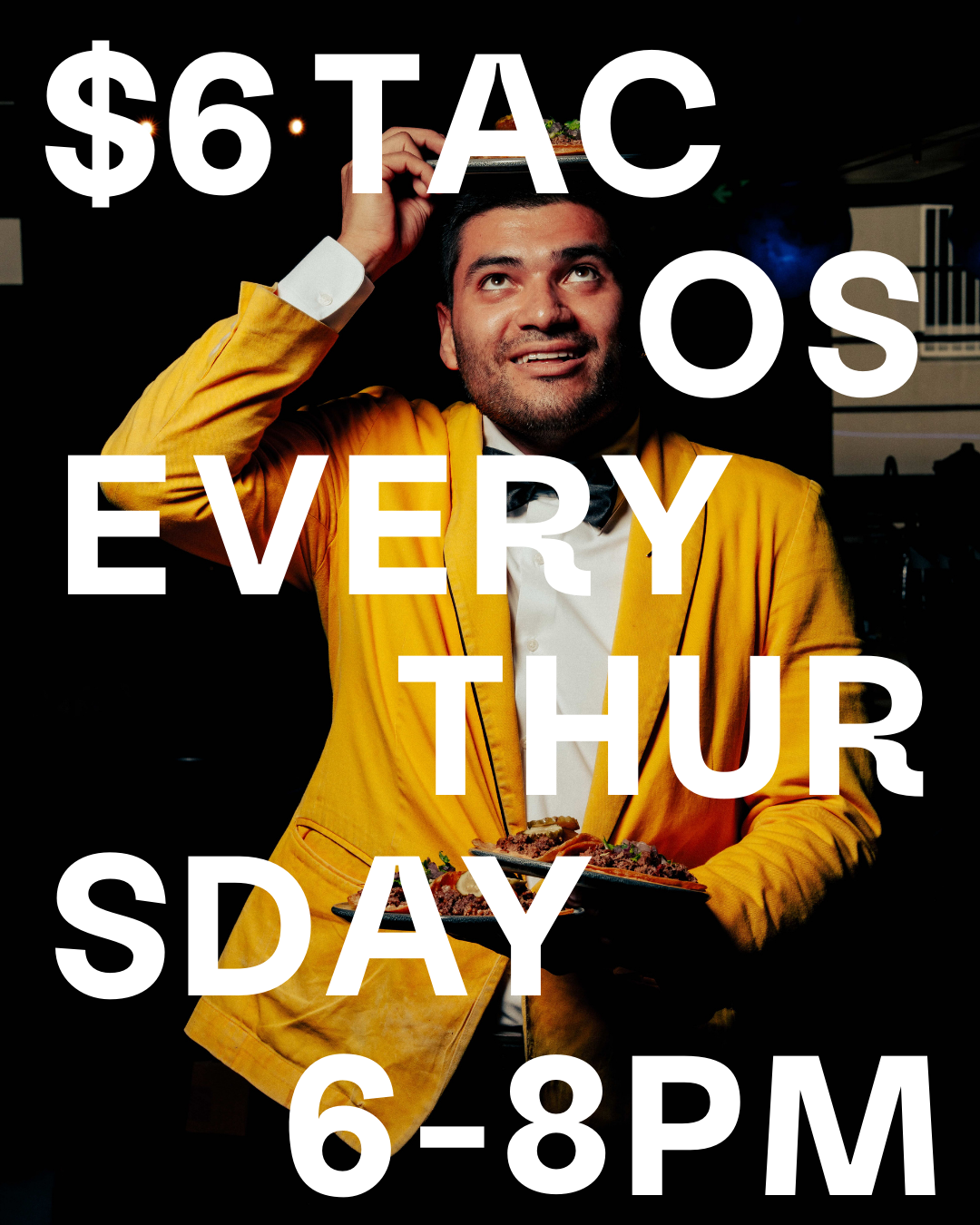 $6 tacos every Thursday from 6-8pm.
